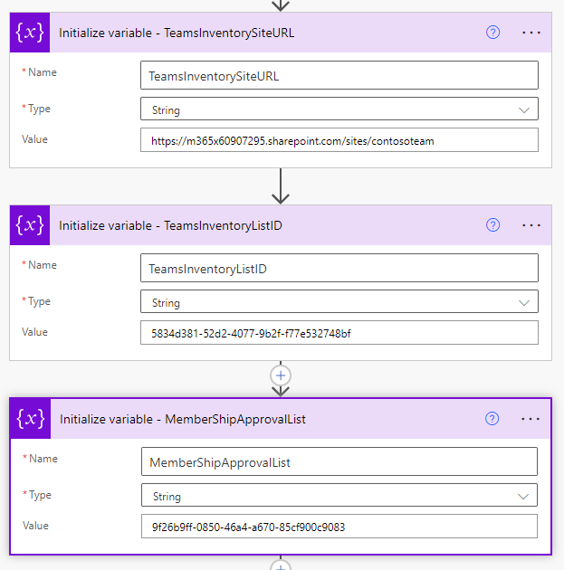Next, we fill up our TeamsOwnerString variable with the list of the UPN’s of the Teams Owners.